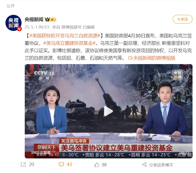 依据乌方5月1日公布的协议内容,美乌共同创建乌克兰重建投资基金,旨在吸引全球投资注入乌克兰。